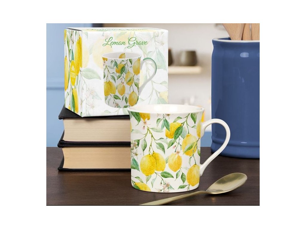 Krásný porcelánový hrnek s oblíbeným dekorem citrónů si snadno oblíbíte.