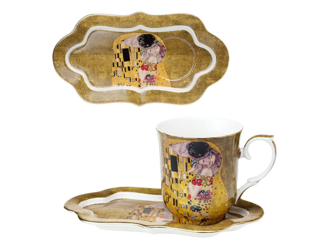 Snídaňový set 350 ml Gustav Klimt - Polibek (světlý podklad)