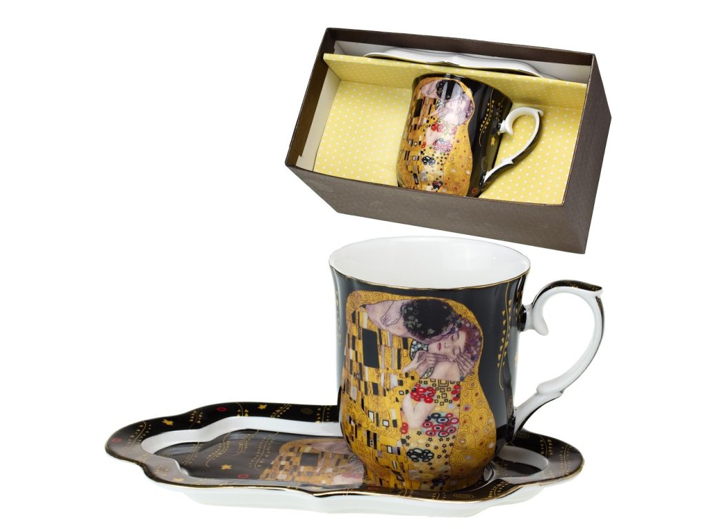 Snídaňový set 350 ml Gustav Klimt - Polibek (tmavý podklad)