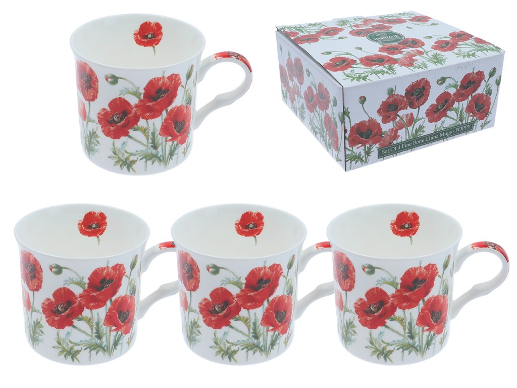 B.E - Sada Porcelánových hrníčků "Vlčí mák I" v dárkové krabičce - 4*295 ml