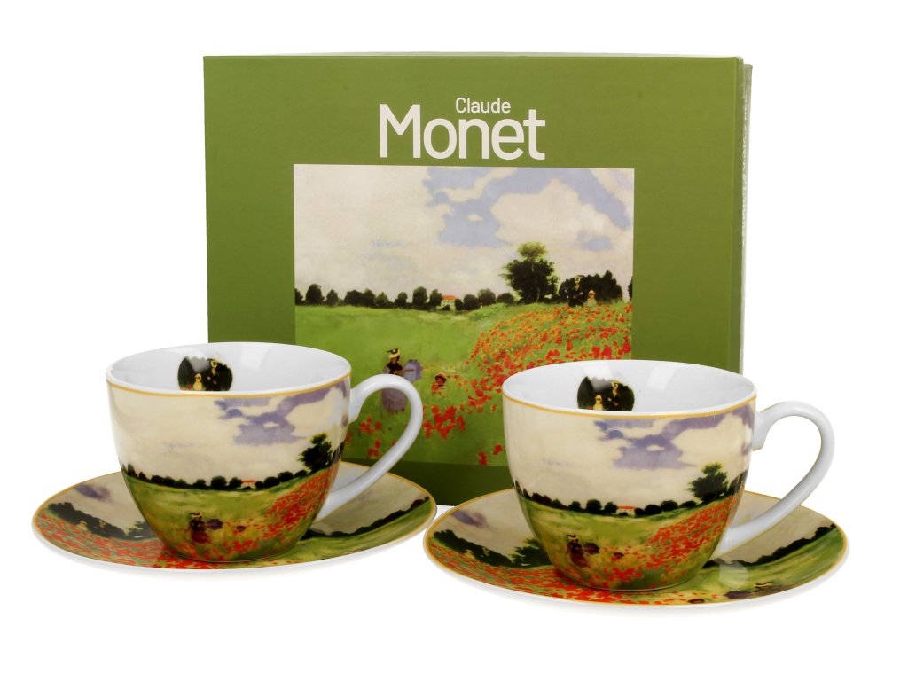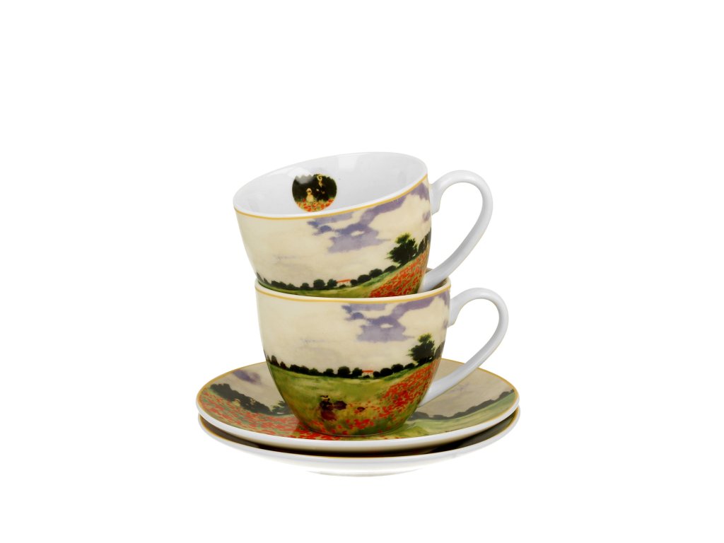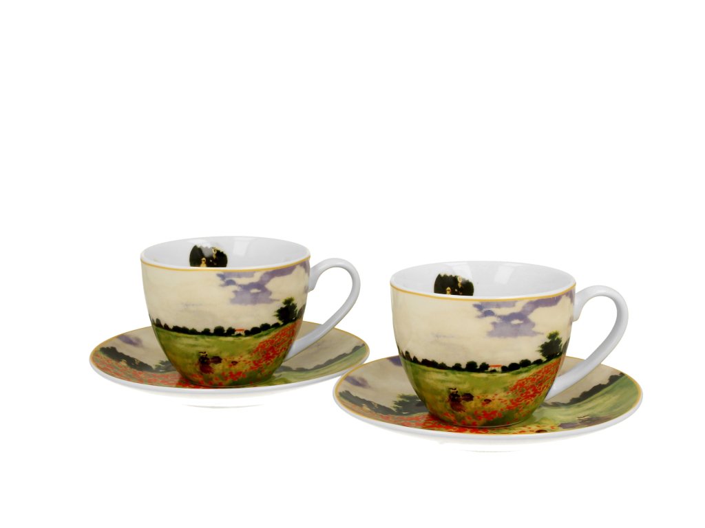 DG - Porcelánové šálky s podšálky C. Monet pole VLČÍ MÁK v dárkové krabičce - 2*280 ml
