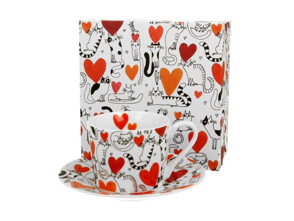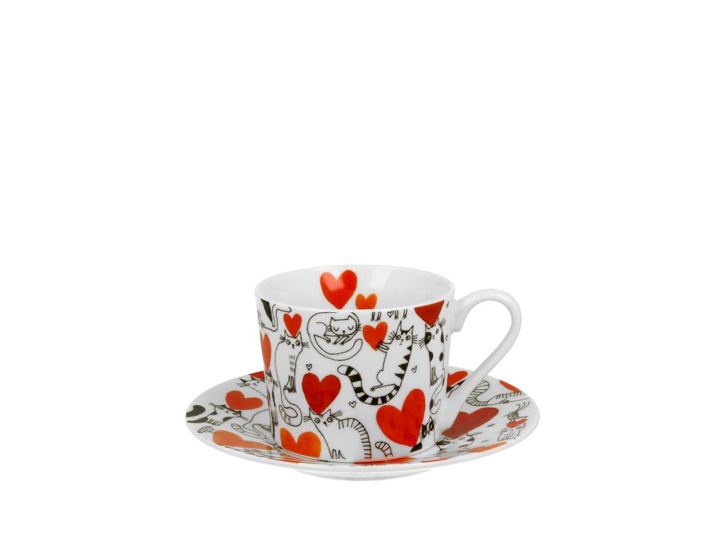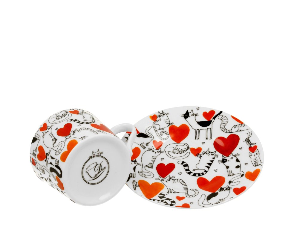 DG - Porcelánový šálek s podšálkem Kočky se srdíčky - 230 ml