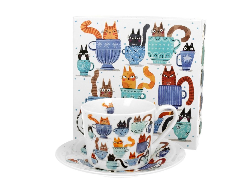 DG - Porcelánový šálek s podšálkem Kočky v šálcích - 200 ml