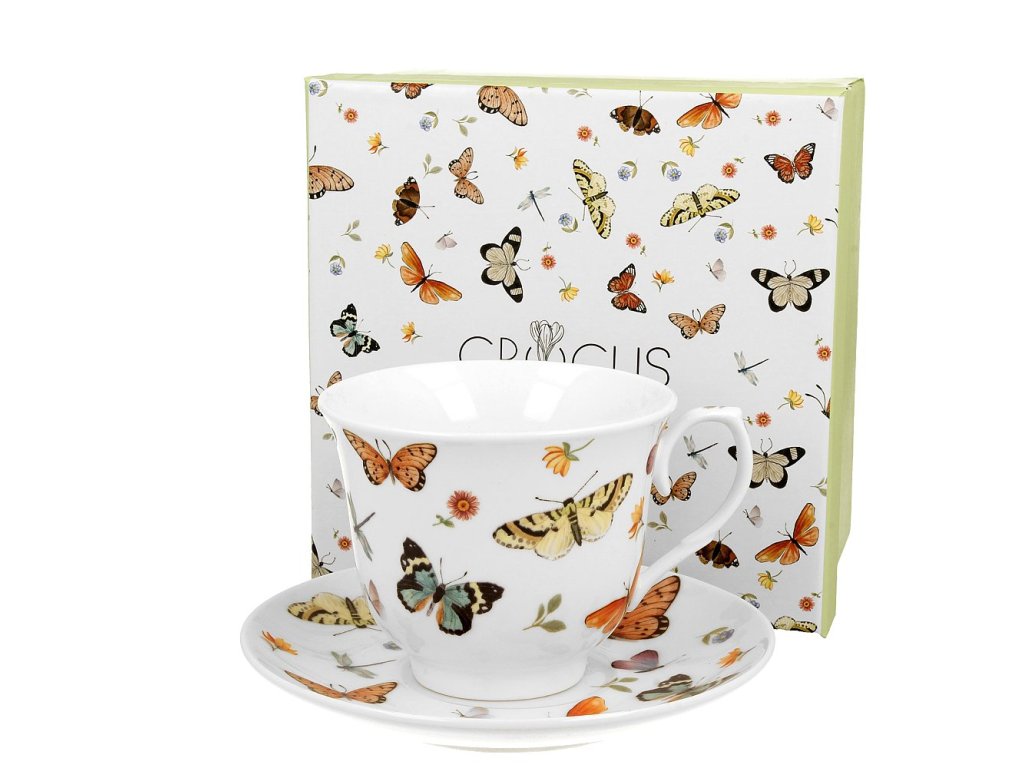 Porcelánový šálek s podšálkem Motýlci si při popíjení oblíbeného nápoje snadno oblíbíte.
