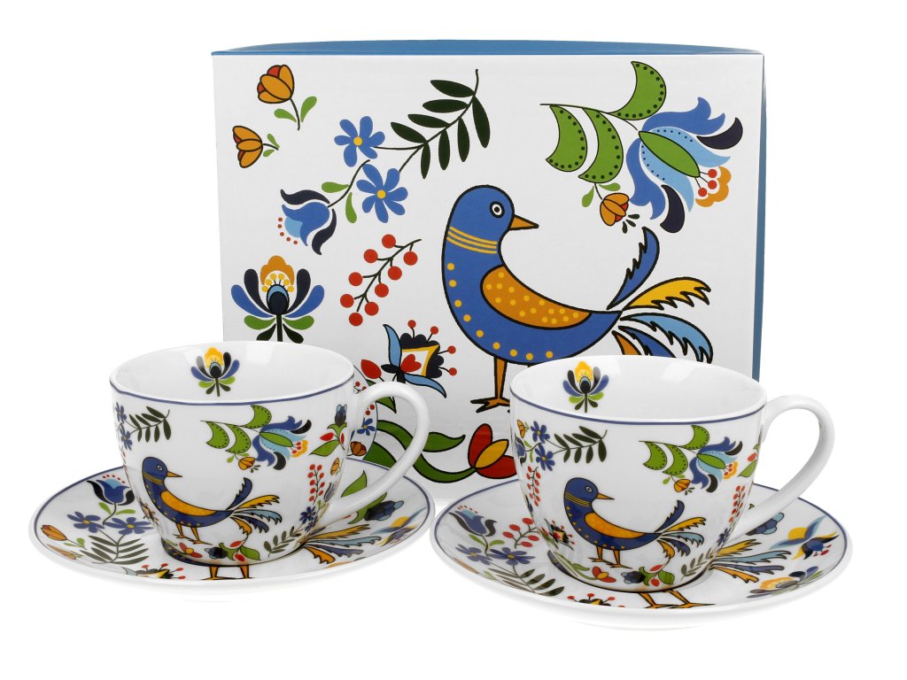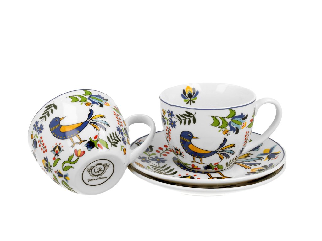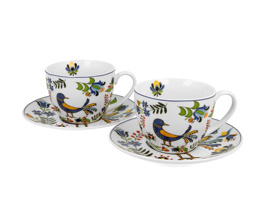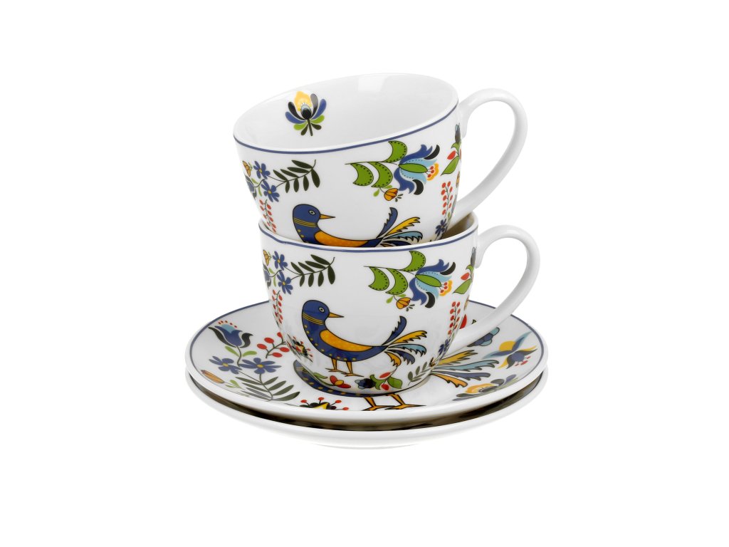 DP - Porcelánové šálky s podšálky Kašubský ptáček 2 ks - 250 ml