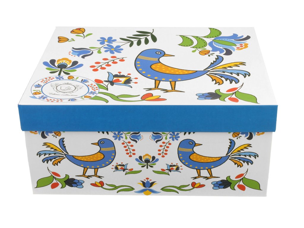 Tato sada dvou šálků a podšálků BIRD KASHUBIAN, součást série ETHNO, je vyrobena z porcelánu New Bone China, který se vyznačuje přírodní krémově bílou barvou s jemným leskem a výjimečnou pevností a odolností, přičemž si zachovává lehký a rafinovaný vzhled.Řada zdobená malovaným motivem ptáka obklopeným aranžmá etnických květin v zářivých barvách vytváří jedinečnou lidovou atmosféru.Zabaleno v dekorativní krabičce se stejným motivem je perfektním nápadem na jedinečný narozeninový dárek pro ženy i muže, ale také jako poděkování pro šéfa nebo učitele.