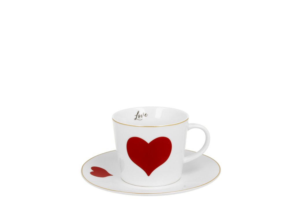 Šálek s podšálkem RED HEART, součást série HEARTS, je vyroben z porcelánu New Bone China, který se vyznačuje elegantní a přírodní krémově bílou barvou s jemným leskem a také výjimečnou odolností. Šálek je zdoben velkým, zářivě červeným srdcem na bílém pozadí. Zabalený v dekorativní krabičce se stejným motivem, je perfektním a jedinečným dárkem pro každou milovanou osobu – nejen na Valentýna.