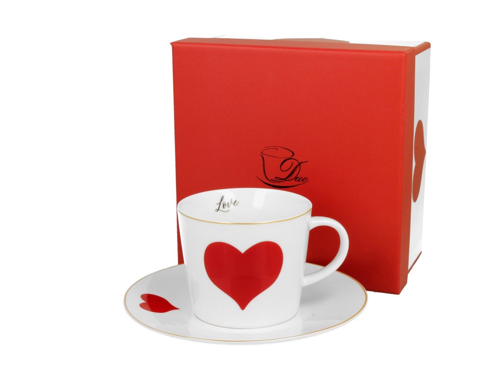 DP - Porcelánový šálek s podšálkem Červené srdce na bílém podkladu - 250 ml