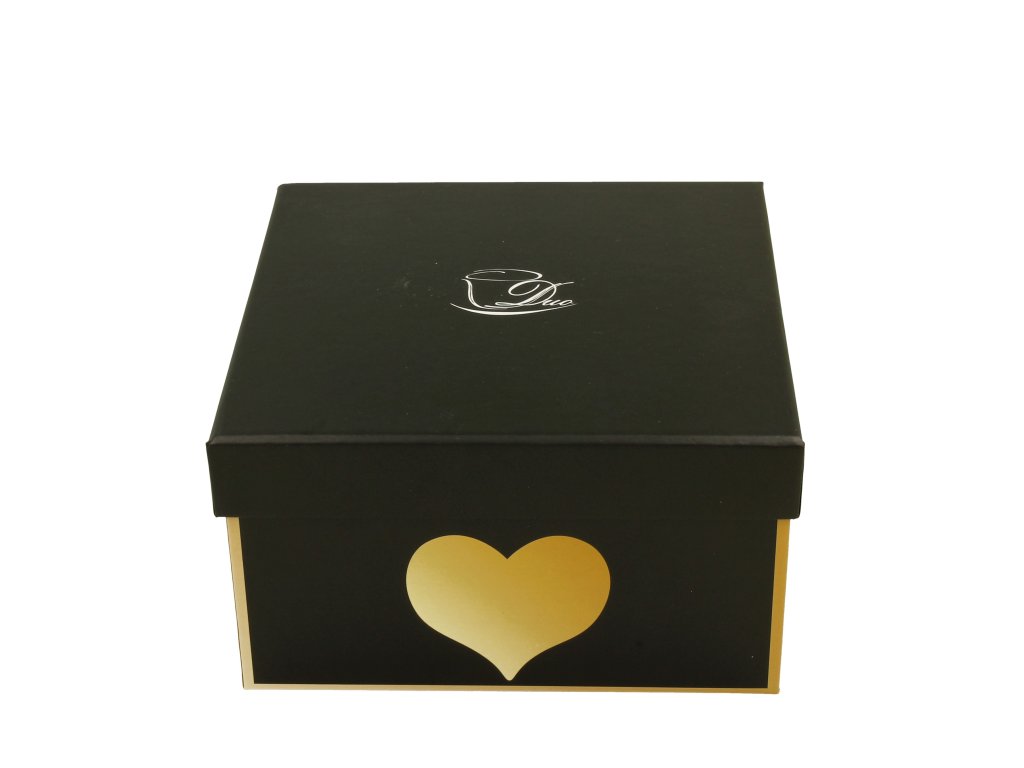 Šálek s podšálkem v černé barvě - BIG HEART, součást série HEARTS, je vyroben z porcelánu New Bone China, který se vyznačuje elegantní a přírodní krémově bílou barvou s jemným leskem a také výjimečnou odolností. Šálek je zdoben velkým zlatým vzorem srdce na tmavě černém pozadí. Zabalený v dekorativní krabičce se stejným motivem, je perfektním jedinečným dárkem pro každou milovanou osobu – nejen na Valentýna.