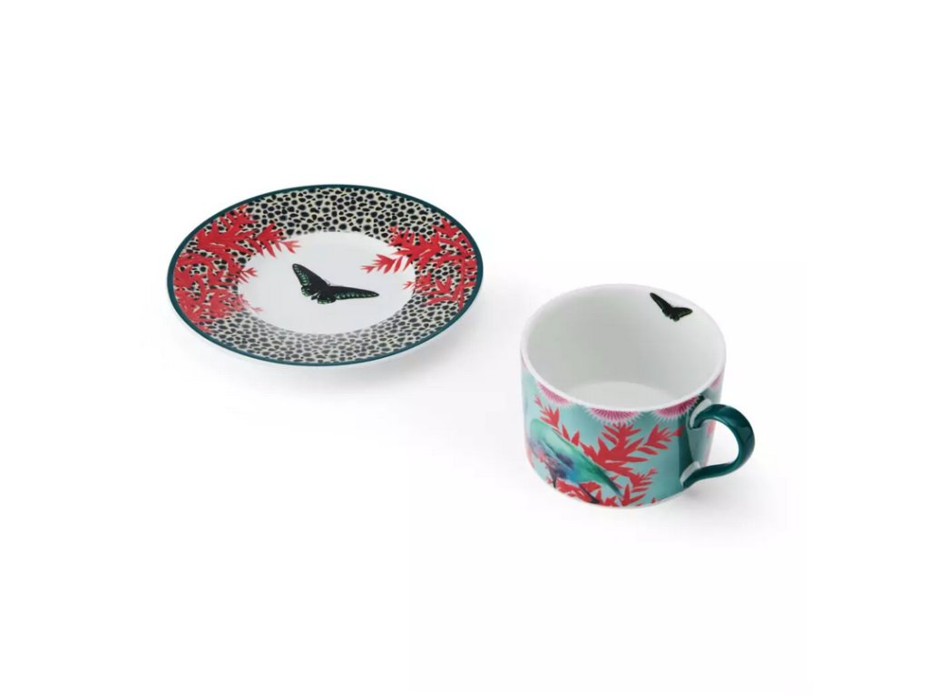Porcelánový hrnek s podšálkem s exotickým motivem je elegantním a praktickým doplňkem každého čajového rituálu. Je vyroben z vysoce kvalitního porcelánu, který zajišťuje odolnost a dlouhou životnost. Jeho design je inspirován bohatou exotickou flórou a faunou, která dodává vašemu prostředí nádech dobrodružství a tajemství. Objem hrnku je 250 ml.