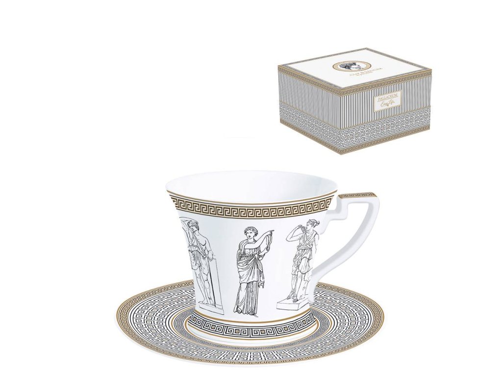 Porcelánový šálek s podšálkem v dekoru inspirovaném antikou z kolekce Palladium italské značky EasyLife® Perfektní dárkové balení ve stylu designu výrobku. Vhodné do myčky na nádobí i mikrovlnné trouby.