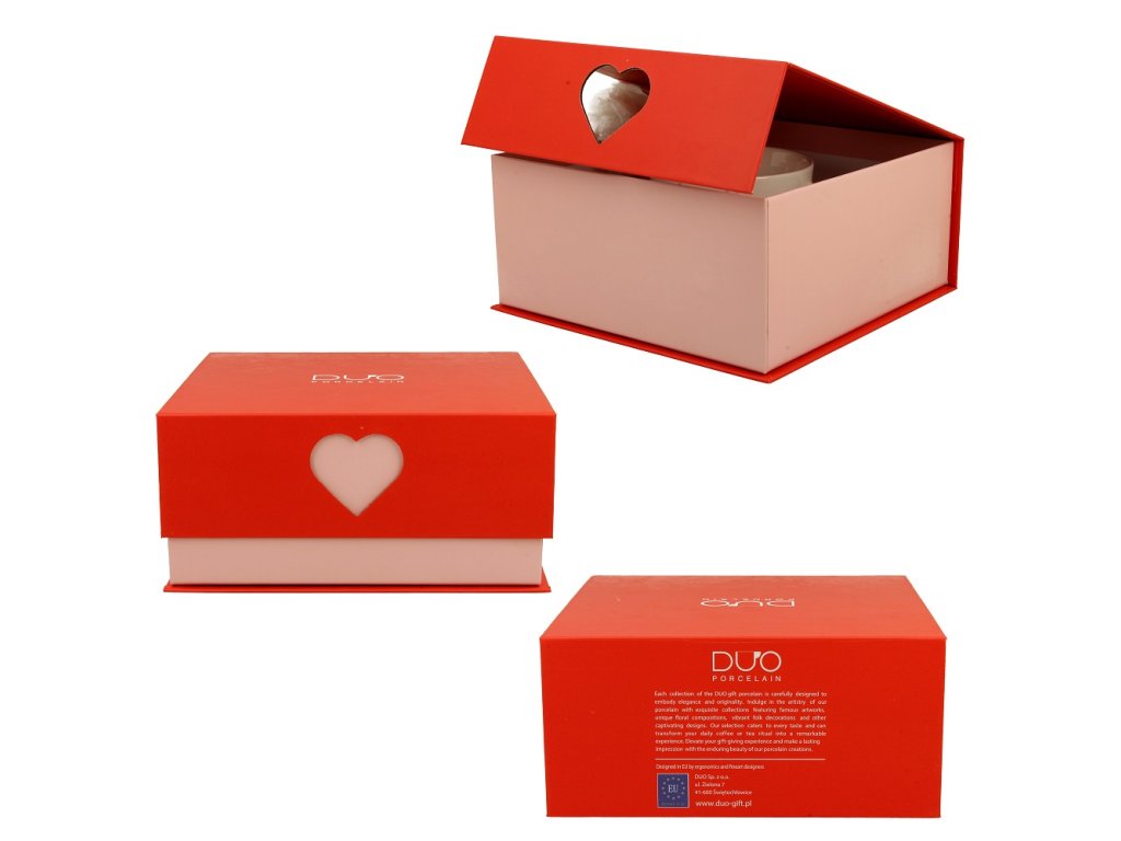 Porcelánový šálek s podšálkem střední velikosti na lungo, nebo čaj s milým dekorem v pěkné pevné dárkové krabičce. Vhodné do myčky na nádobí i mikrovlnné trouby.