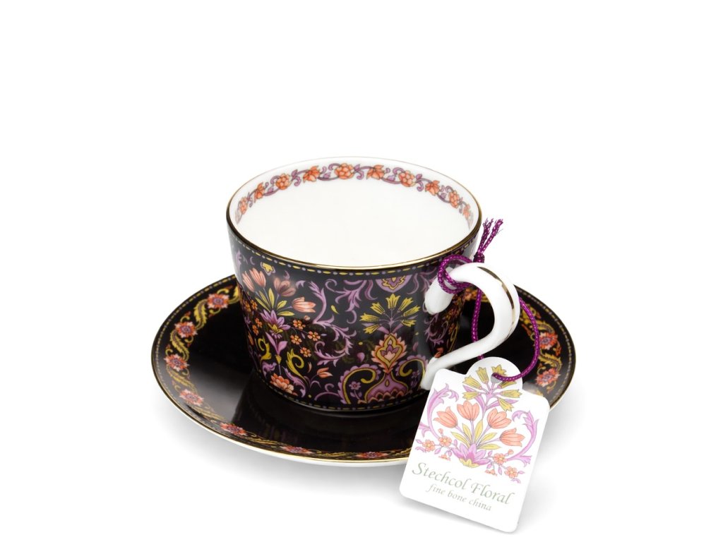 Šálek s podšálkem 240 ml z kostního porcelánu - Midnight botanica