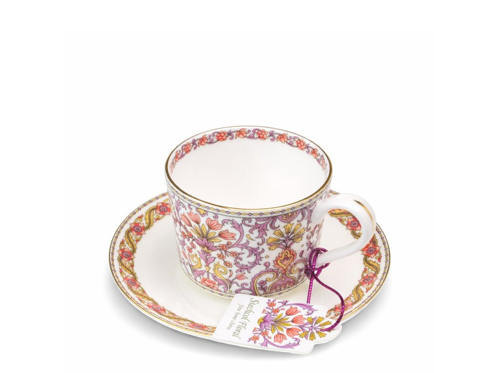 Luxusní porcelánový šálek s podšálkem z velmi jemného kostního porcelánu kategorie fine bone china. Nedoporučujeme používat v myčce na nádobí a ani v mikrovlnné troubě.