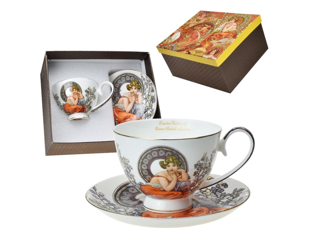Šálek s podšálkem 250 ml se Alfons Mucha - Topaz (bílý podklad)
