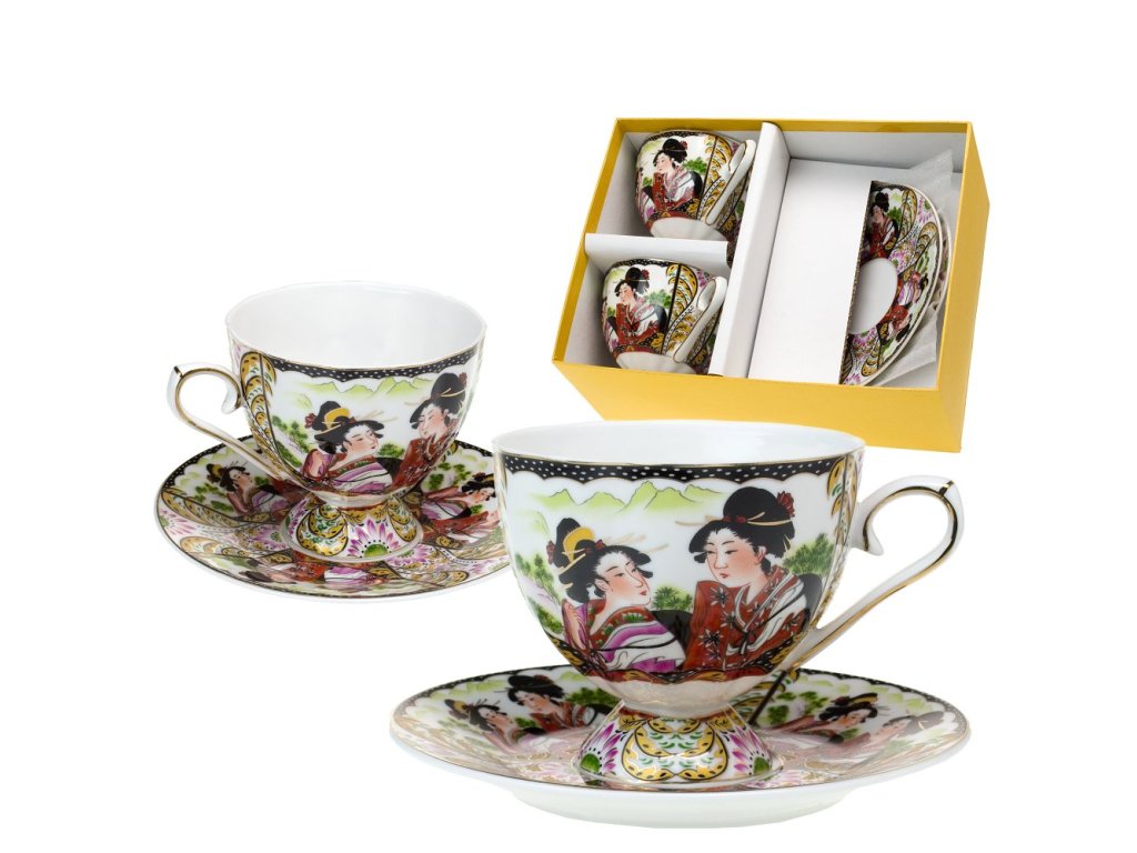 Šálek s podšálkem 270 ml na čaj - čínský motiv - sada 2 ks