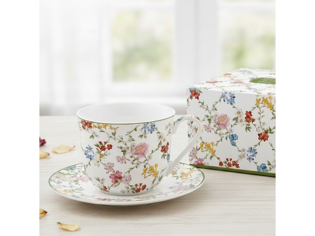 Velký šálek s podšálkem z velmi kvalitního porcelánu italské značky Easy Life z kolekce Garden dreams. Vhodné do myčky na nádobí i mikrovlnné trouby.