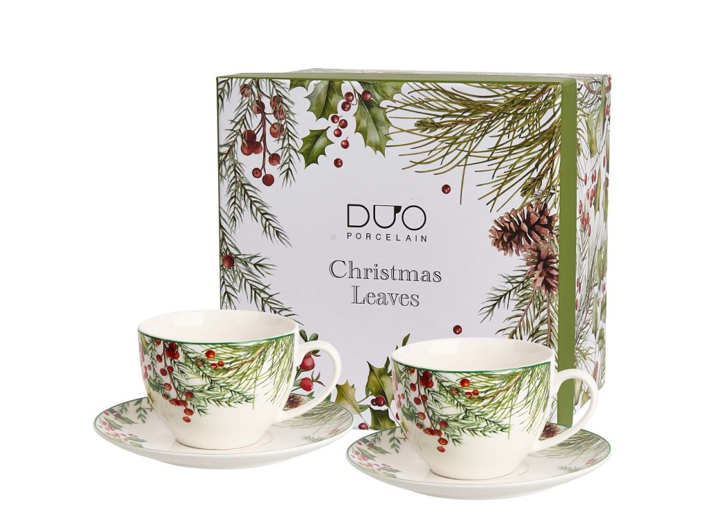 Souprava 2 šálků s podšálkem na kávu, nebo čaj v pěkné stylové dárkové krabičce. Vhodné do myčky na nádobí i mikrovlnné trouby.