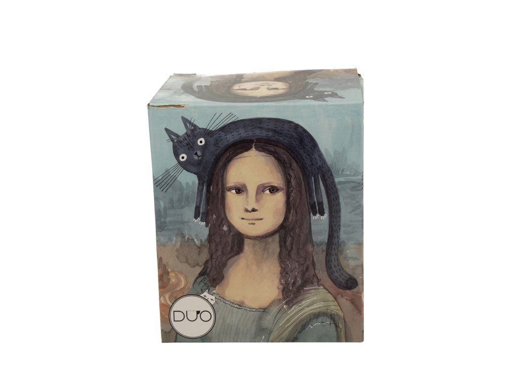 Porcelánový hrnek se sítkem a víčkem Mona Lisa s kočkou, součást série Animals, je vyroben z nového kostního porcelánu, který se vyznačuje přírodní krémově bílou barvou s jemným leskem a výjimečnou pevností a odolností, přičemž si zachovává lehký a elegantní pocit. Ideální pro přípravu vašeho oblíbeného čaje a aromatických bylin.Tato řada byla pečlivě navržena s ohledem na milovníky umění a unikátních předmětů. Rozmarný motiv zobrazuje kreativní interpretaci obrazu "Mona Lisa" od Leonarda da Vinci s namalovanou černou kočkou na hlavě, což dodává dílu jedinečný charakter. Tento nekonvenční design kombinuje eleganci klasické malby s moderním přístupem k designu, díky čemuž je kolekce vynikající volbou pro každého, kdo oceňuje originalitu.Hrnek, balený v dekorativní krabičce zdobené stejným motivem, je perfektním dárkem pro každého, kdo oceňuje jedinečný design a špetku humoru ve svém životě. Dopřejte své kuchyni nádech radosti a překvapte své hosty originálním designem.