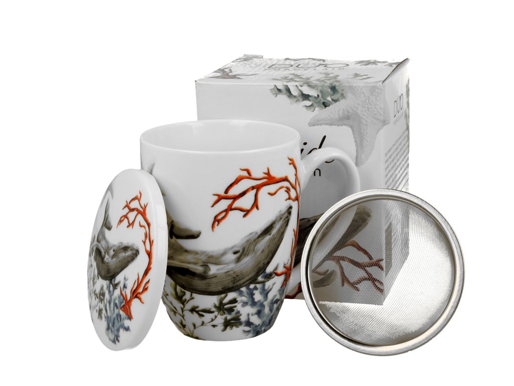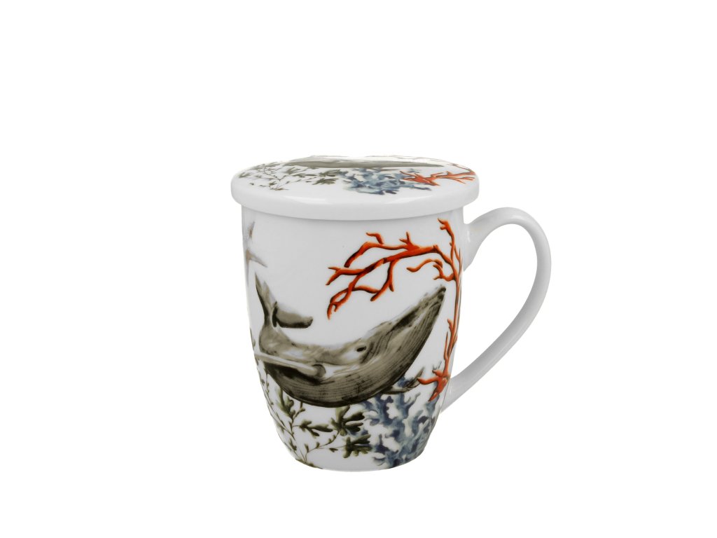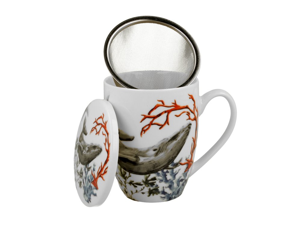 DP - Porcelánový hrnek se sítkem a víčkem Velryba - 360 ml
