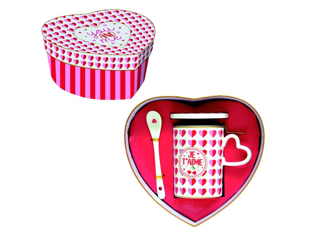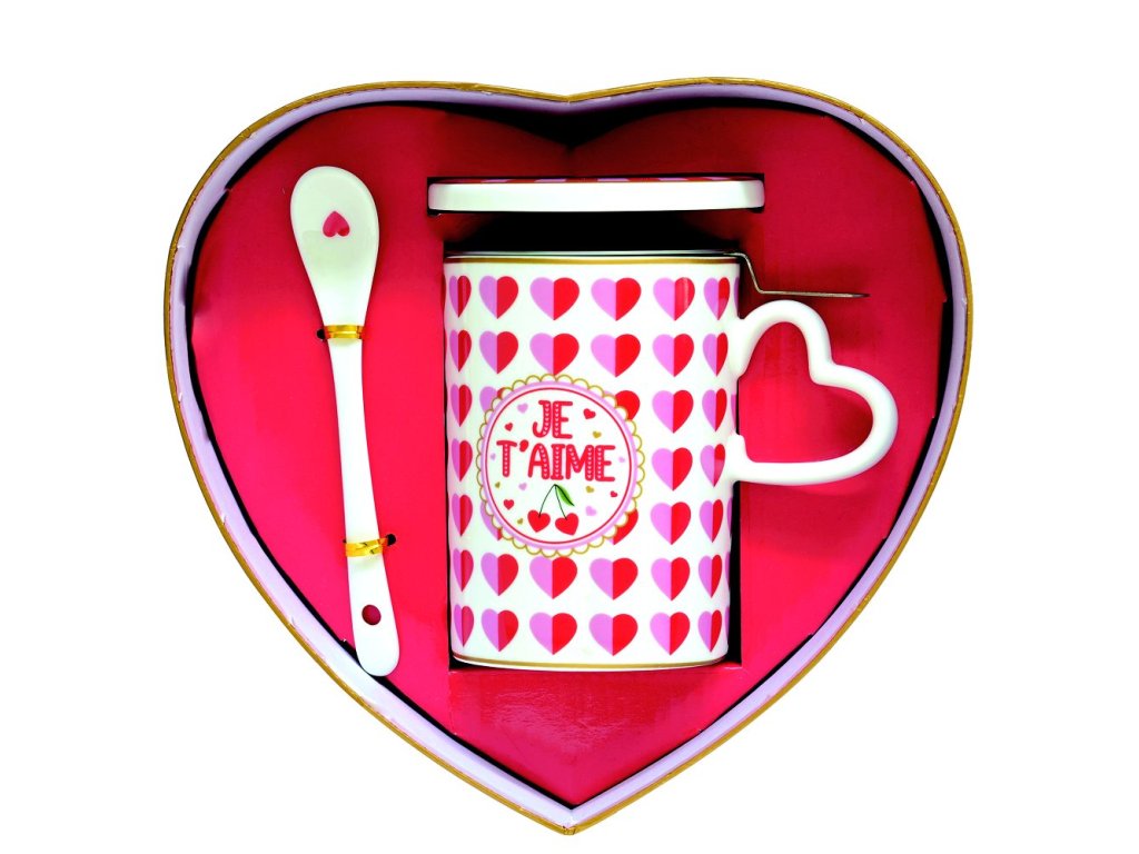 Porcelánový hrnek na bylinky s nerezovým sítkem, porcelánovým víčkem a porcelánovou lžičkou na bylinkový čaj v hravém dekoru s malými srdíčky italské značky Easy Life®. Perfektní dárkové balení ve stylu designu výrobku. Vhodné do myčky na nádobí i mikrovlnné trouby(KROMĚ SÍTKA).