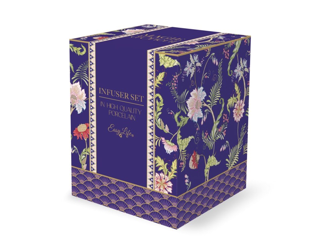 Porcelánový hrnek na bylinky s nerezovým sítkem a porcelánovým víčkem ve výrazném květinovém dekoru z kolekce Magie d'Orient Perfektní dárkové balení ve stylu designu výrobku. Vhodné do myčky na nádobí i mikrovlnné trouby.