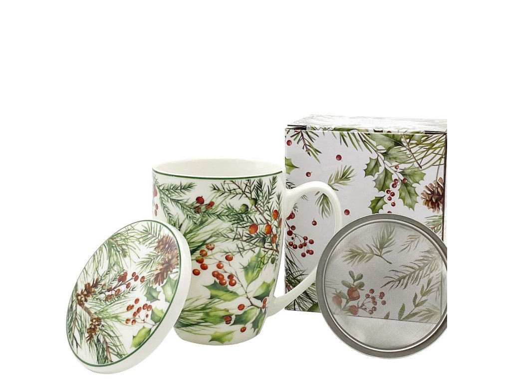 Hrnek z jemného porcelánu značky DUO porcelain s porcelánovým víčkem a jemným kovovým sítkem. Vhodné do myčky na nádobí i mikrovlnné trouby (bez kovového sítka)