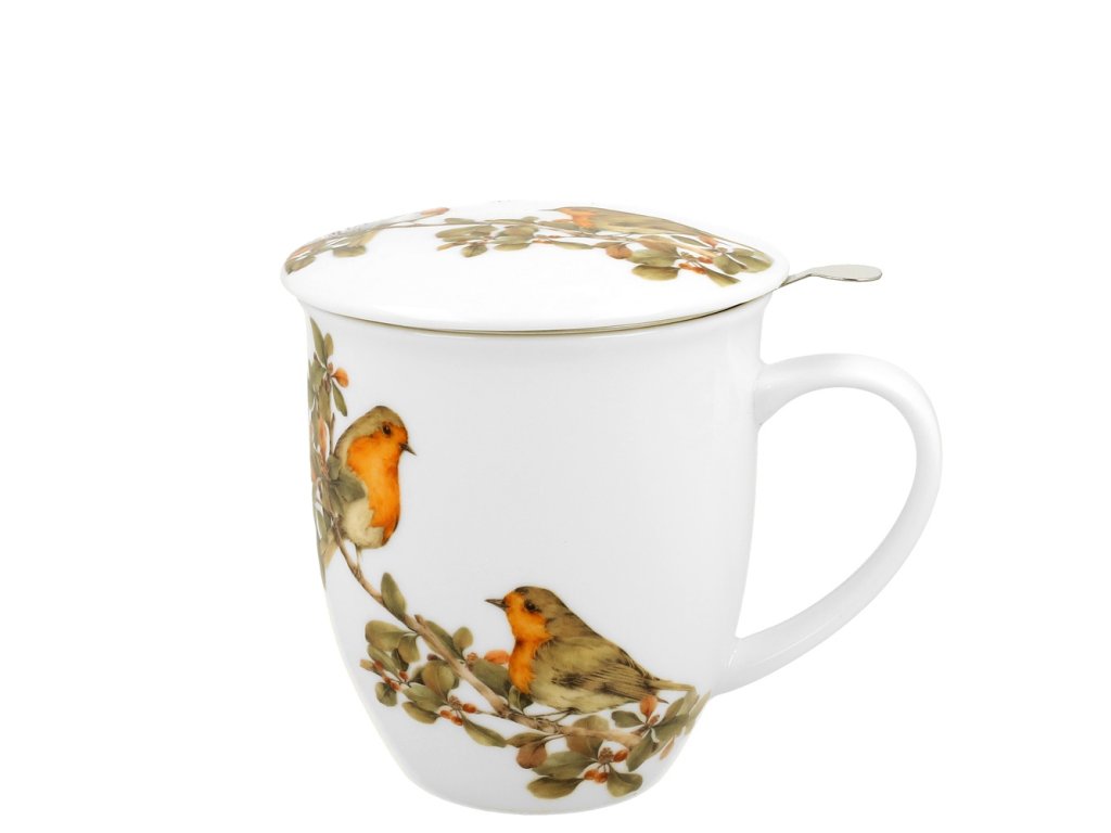Velký hrnek na bylinky s jemným sítkem a porcelánovým víčkem s dekorací z kolekce "The World of Birds" polského producenta Duo gift. Vhodné do myčky na nádobí i mikrovlnné trouby.
