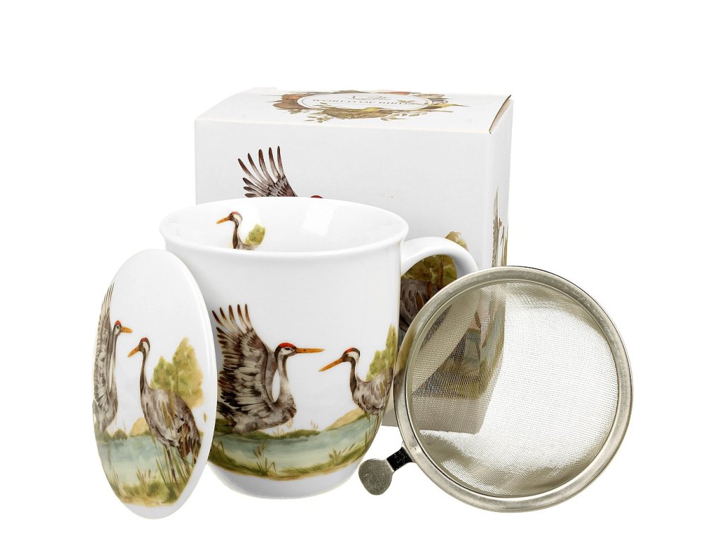 Velký hrnek na bylinky s jemným sítkem a porcelánovým víčkem s dekorací z kolekce "The World of Birds" polského producenta Duo gift. Vhodné do myčky na nádobí i mikrovlnné trouby.