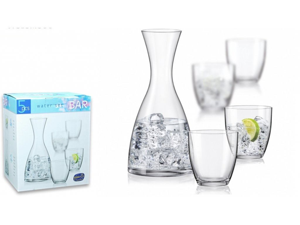 Praktický set 4 skleniček s karafou vhodný při podávání vody a jiných nápojů při různých příležitostíech. Každý si jistě pamatuje tzv., barové sklo, které bylo vždy po ruce.