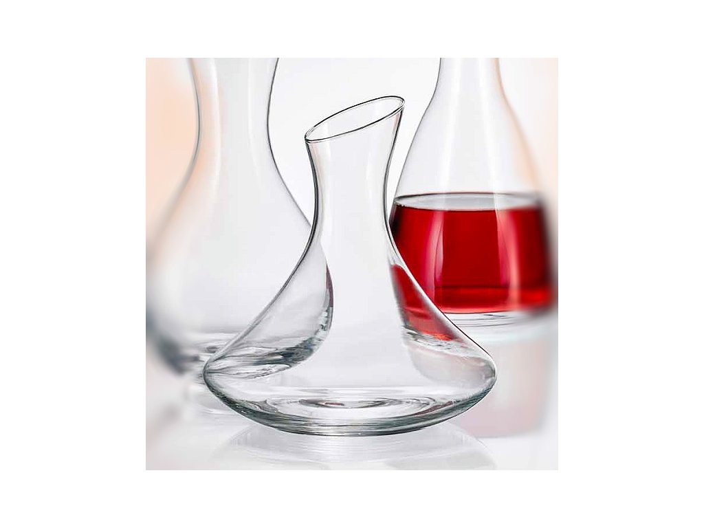 Elegantní karafa na červené víno s diagonálním hrdlem pro lepší nalévání. Lze mýt v myčce na nádobí. Baleno v dárkové krabici po 1 kuse. Cena za kus.