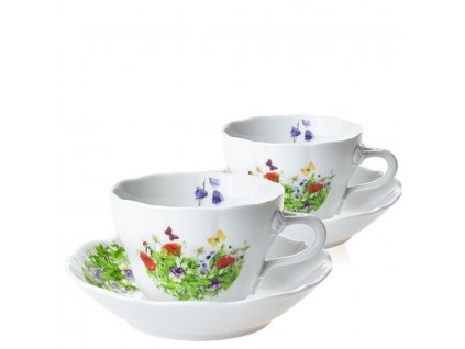 Porcelánové šálky s podšálkem, Rozkvetlá louka 2 ks z českého porcelánu. Šálek 250 ml, podšálek ø 155 mm. Balení obsahuje 2 ks.