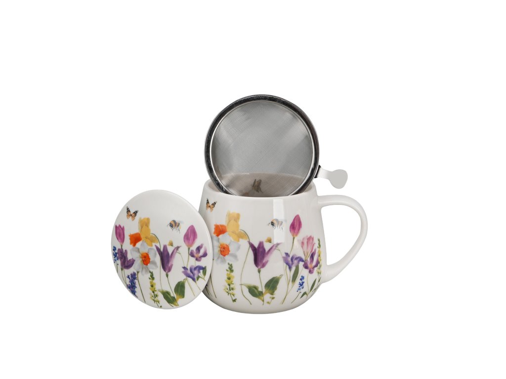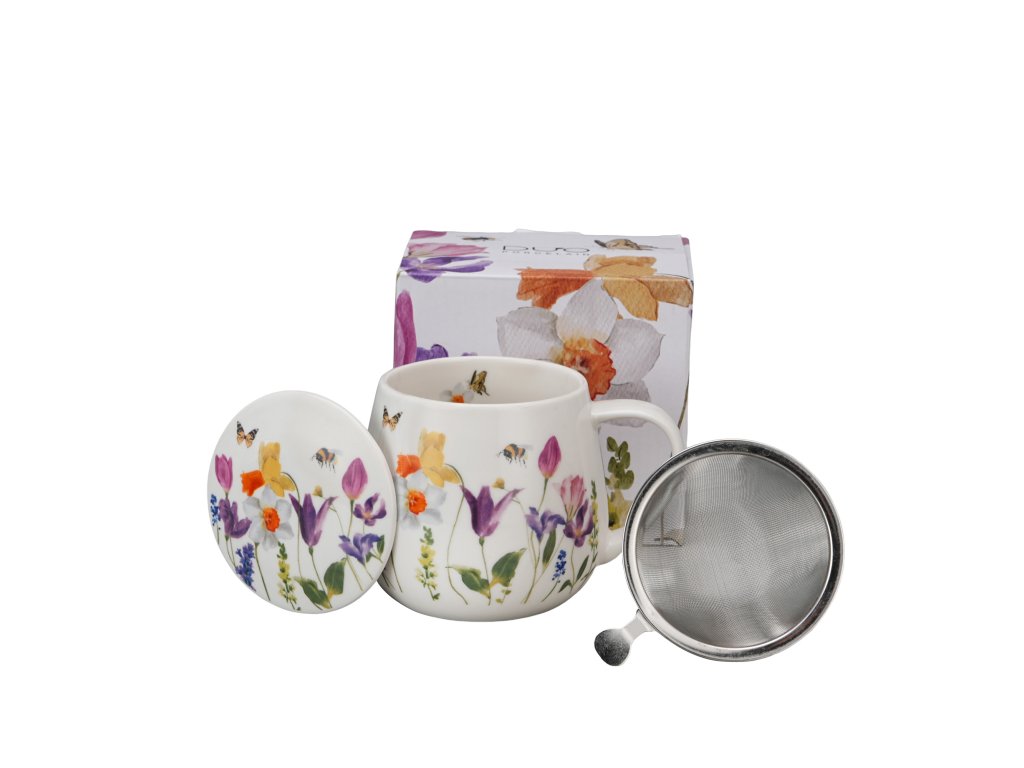 Porcelánová barylka se sítkem a víčkem Luční kvítí se včelkou a motýlkem v dárkové krabičce potěší každého obdarovaného.