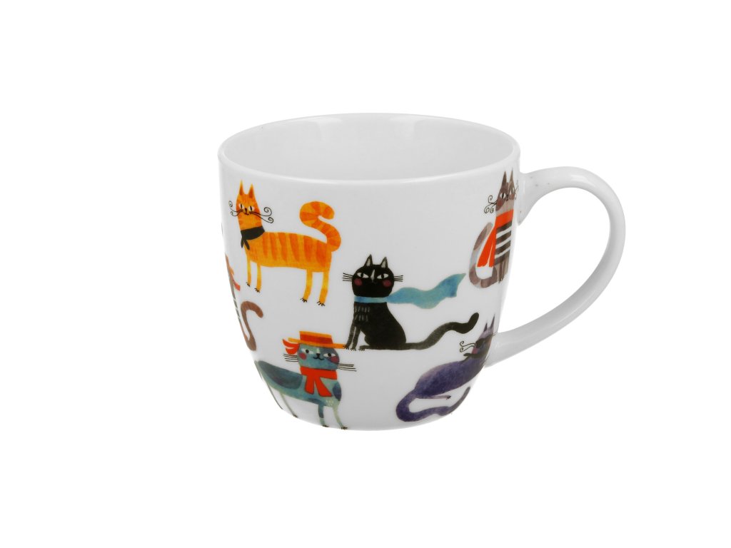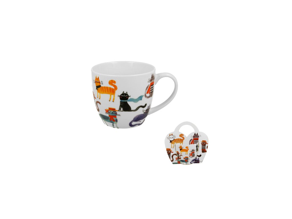 DG - Porcelánový hrnek kočky v kloboučku, šátku, šále a brýlí - 460 ml
