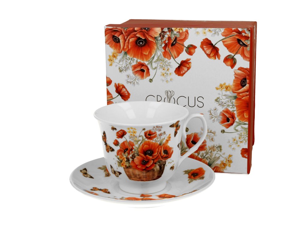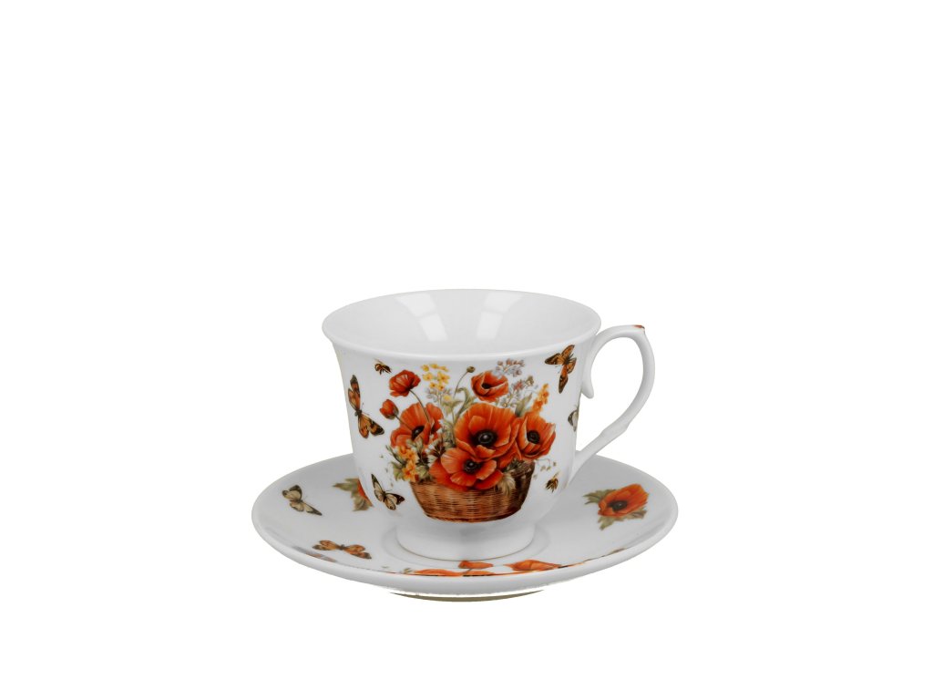 DG - Porcelánový šálek s podšálkem Vlčí máky v košíku - 250 ml