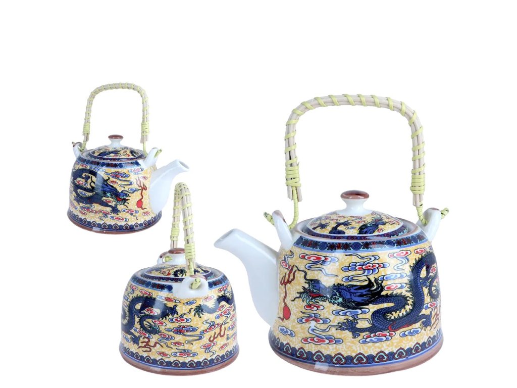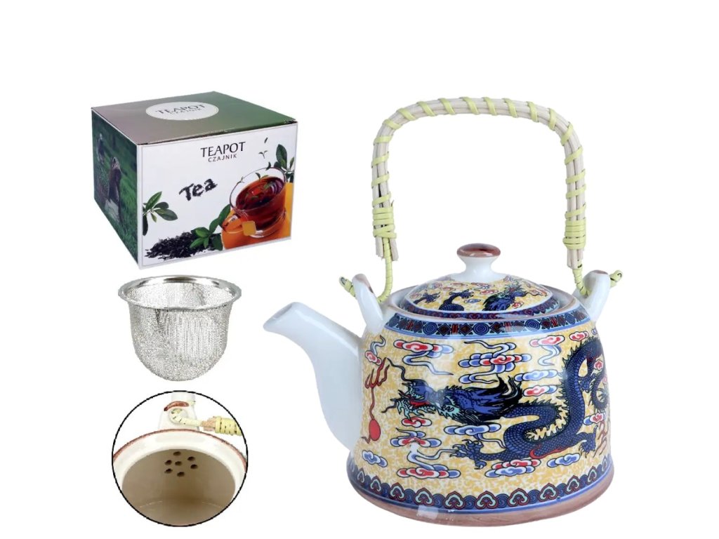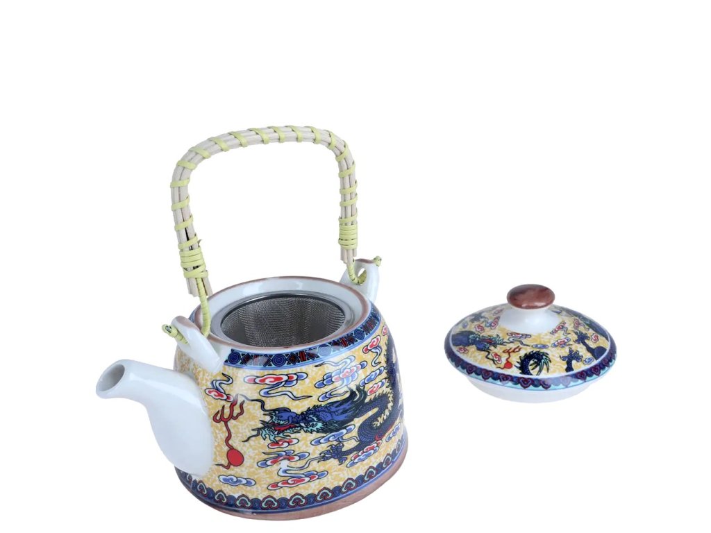 Konvice na čaj 900 ml se sítkem a proutěným uchem - tradiční čínský motiv s drakem