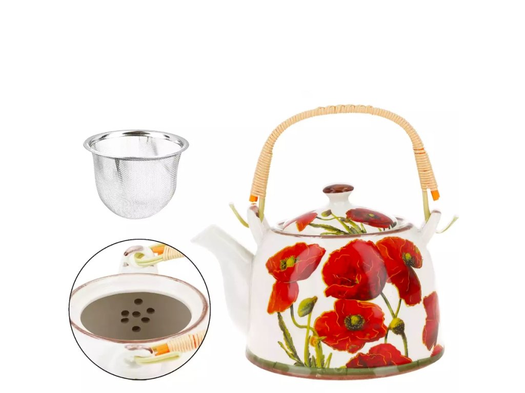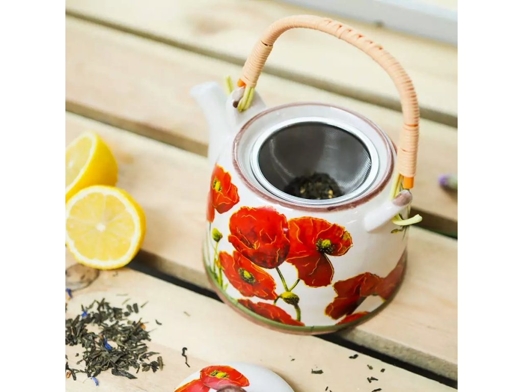 Konvice na čaj 900 ml se sítkem a proutěným uchem - vlčí máky
