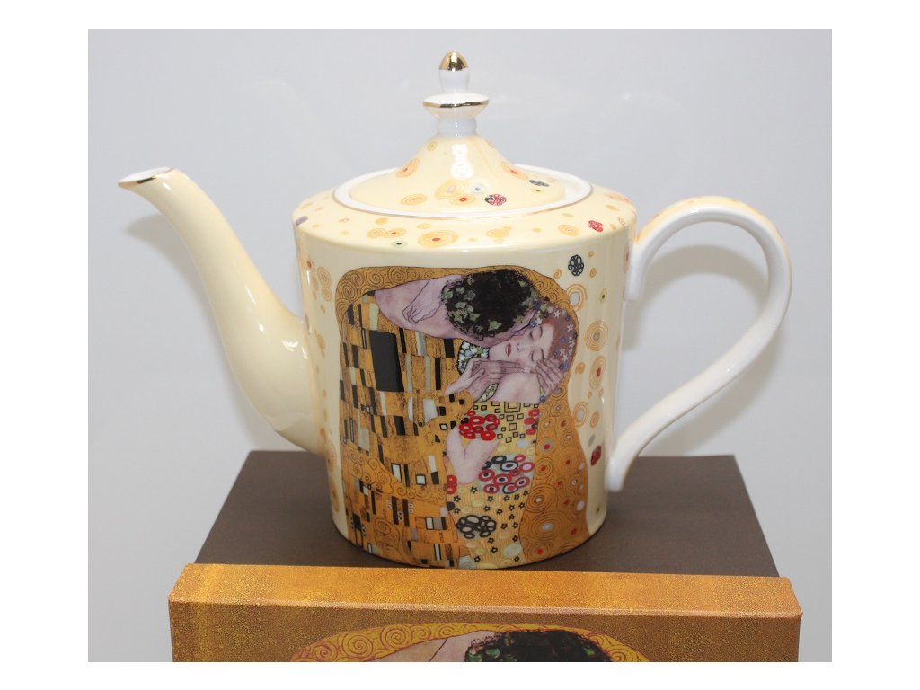 Porcelánová konvice v dárkové krabičce G. Klimt, Polibek světlý podklad- 1 litr