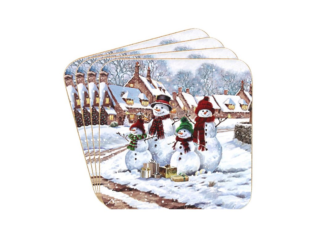 LP - Vánoční korkové prostírání pod skleničky Snowmen 4 ks - 10,5x 10,5 cm