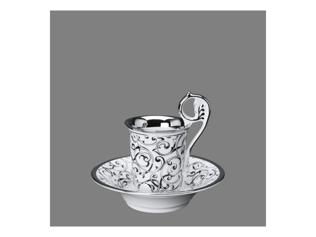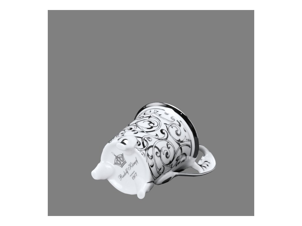 Exklusivní ručně litý porcelán s bohatou dekorací. Černý obtisk + ruční dekorace platinou. Nevhodné do mikrovlnné trouby i myčky na nádobí.Doplňkové parametry