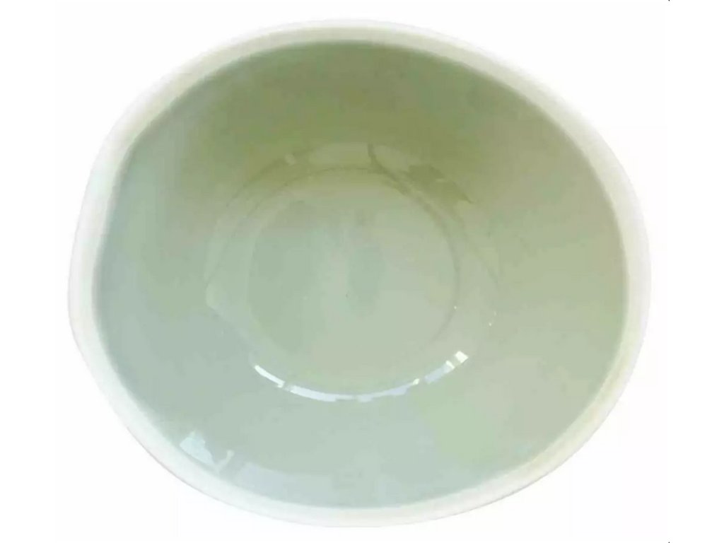 Porcelánová mísa Abitare světle zelená. Mísa je hladká, jednobarevná s bílým lemem, bez vzoru. Rozměry jsou 16×13 cm.