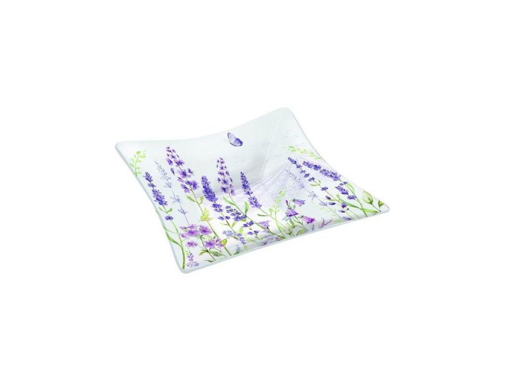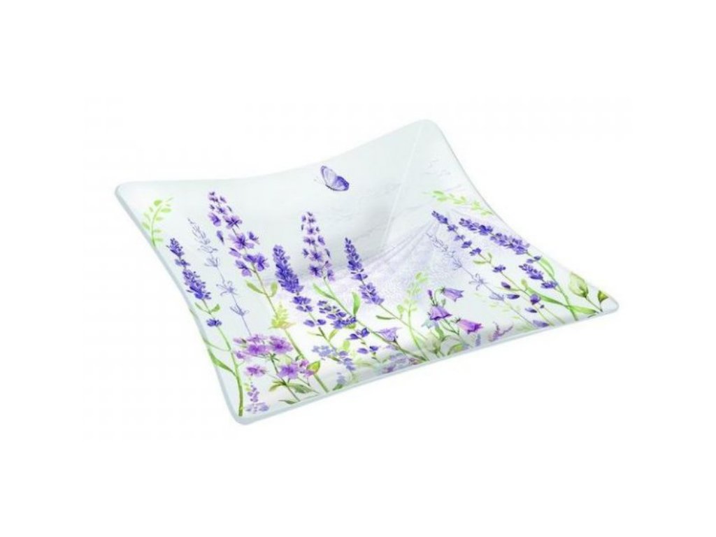 Skleněný talíř LAVENDER FIELD v dárkové krabičce je součástí italské značky Easy Life