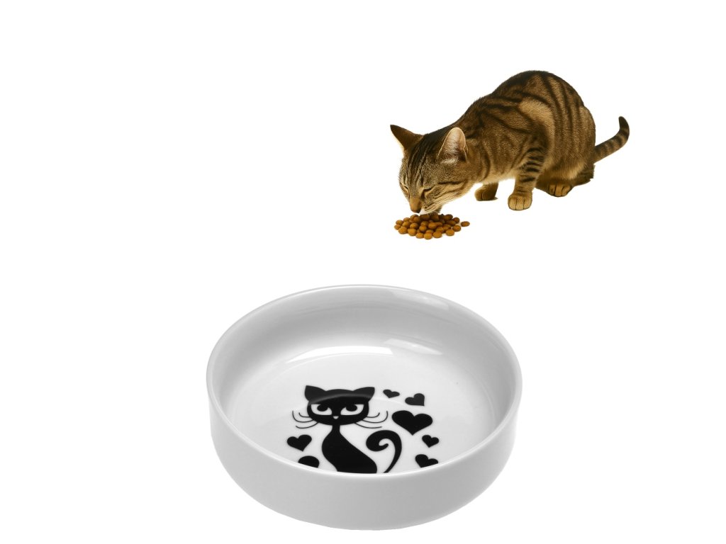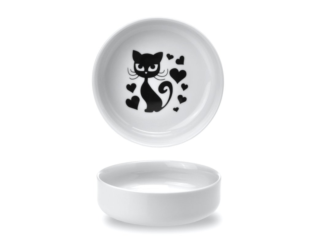 Miska je vyrobená ze silnějšího porcleánu z dubské porcelánky a lze ji použít na krmivo pro kočky. Lze použít v mikrovlnné troubě i myčce na nádobí.