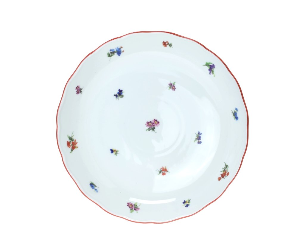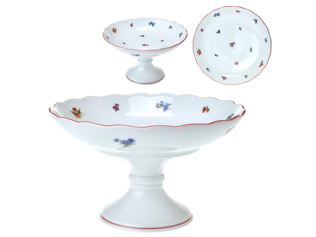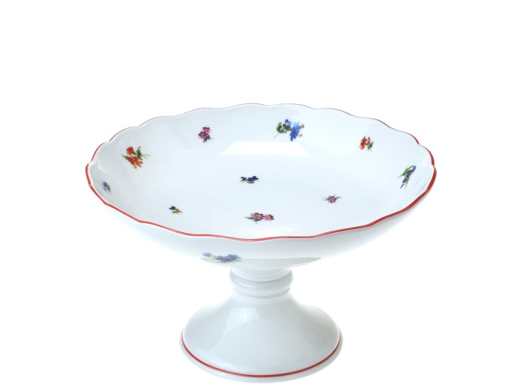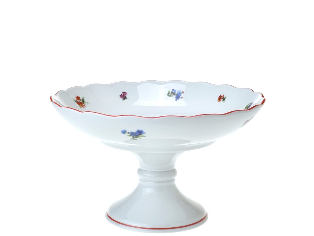 Porcelánová mísa na noze (nástolec) na ovoce s tradičním dekorem. Nástolec se skládá z dubské mísy kompotové 24 cm ve tvaru Rokoko a přilepené nožky. Lze použít v myčce na nádobí.