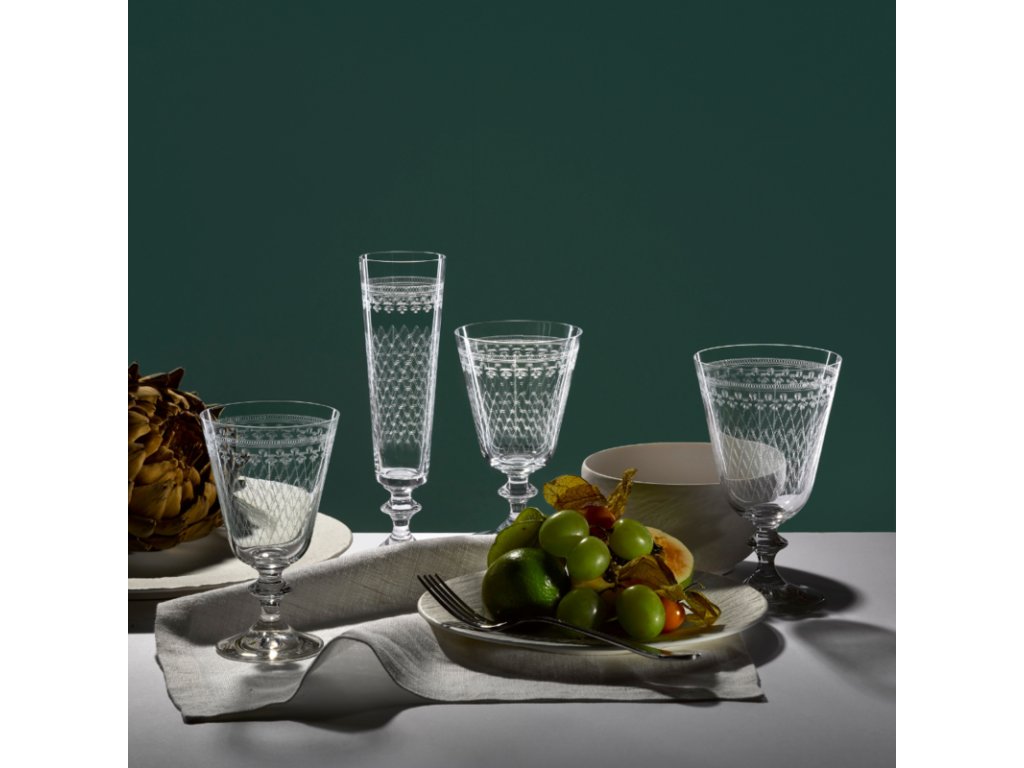 Historie stále žije. V našich srdcích a nyní i na skleničkách Bella z kolekce Madame Karolinka, do kterých ve sklárně Crystalex na počest proslulého závodu v Karolince vryli sto let starý a krásný guilloche dekor poprvé vyrobený právě v Karolince technikou pantografu. Lze použít v myčce na nádobí.