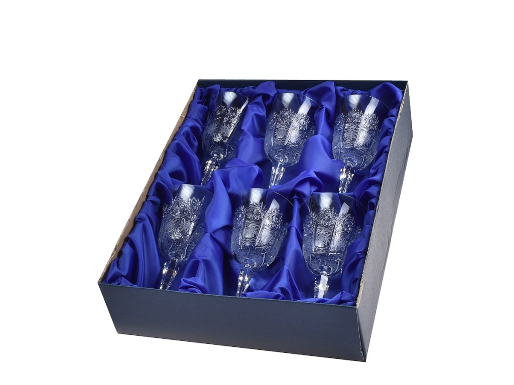 Ručně broušené křišťálové sklo. Balení: 6 ks v krabici. Cena za sadu.