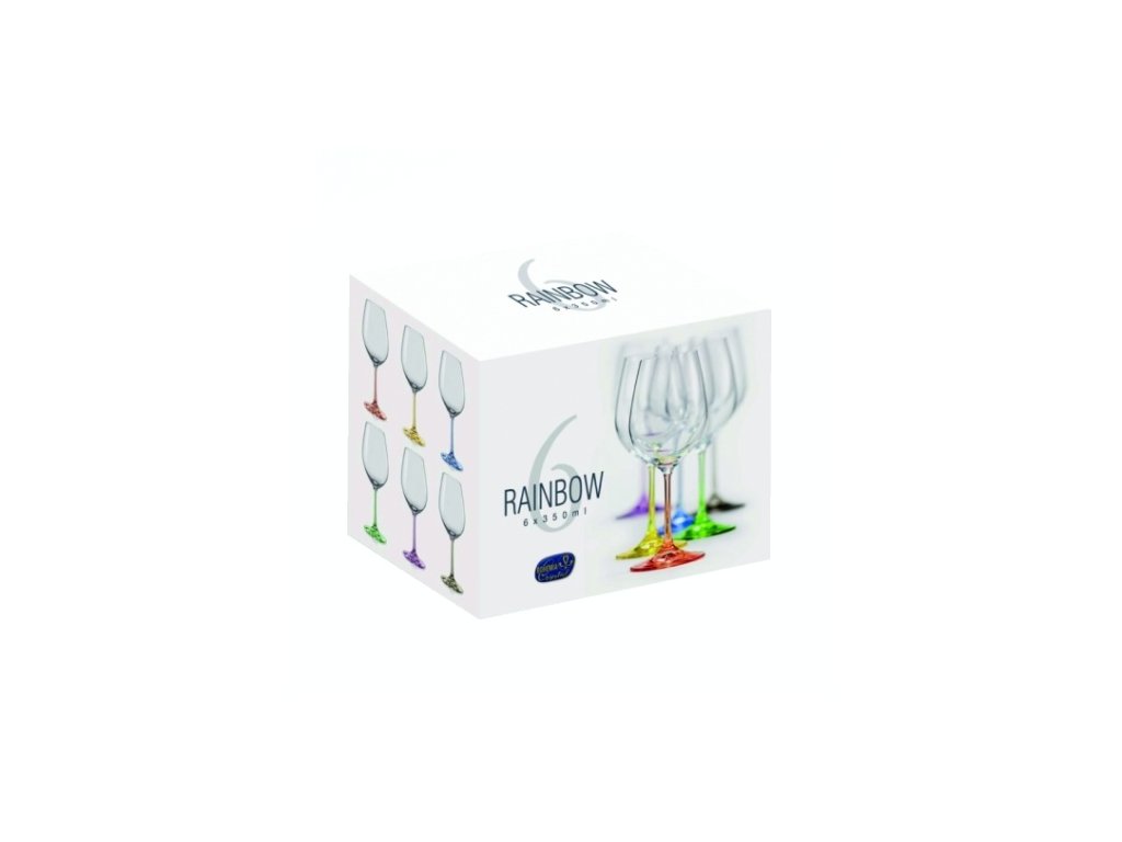 Rainbow je v překladu z angličtiny "duha". Každý stolující má svou barvu. Technika dekorace stříkáním barev na čirou sklovinu. Není vhodné do myčky nádobí. Baleno v dárkové krabičce po 6ti kusech.