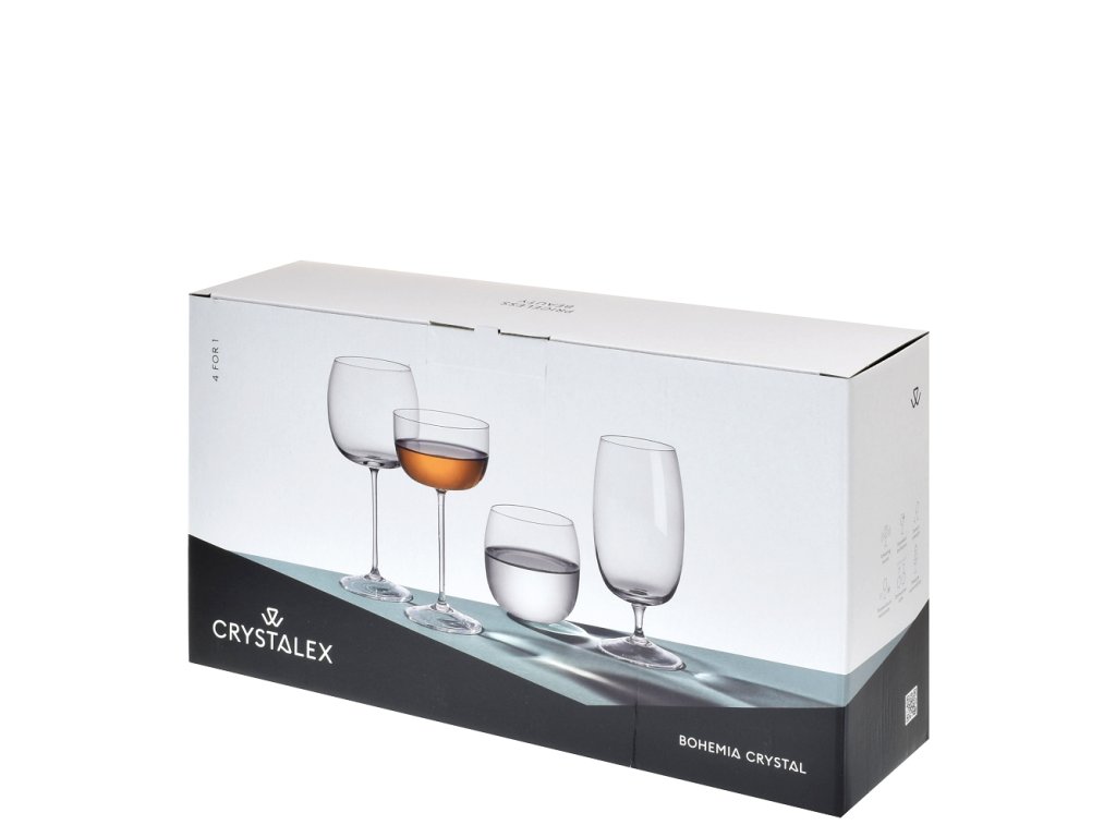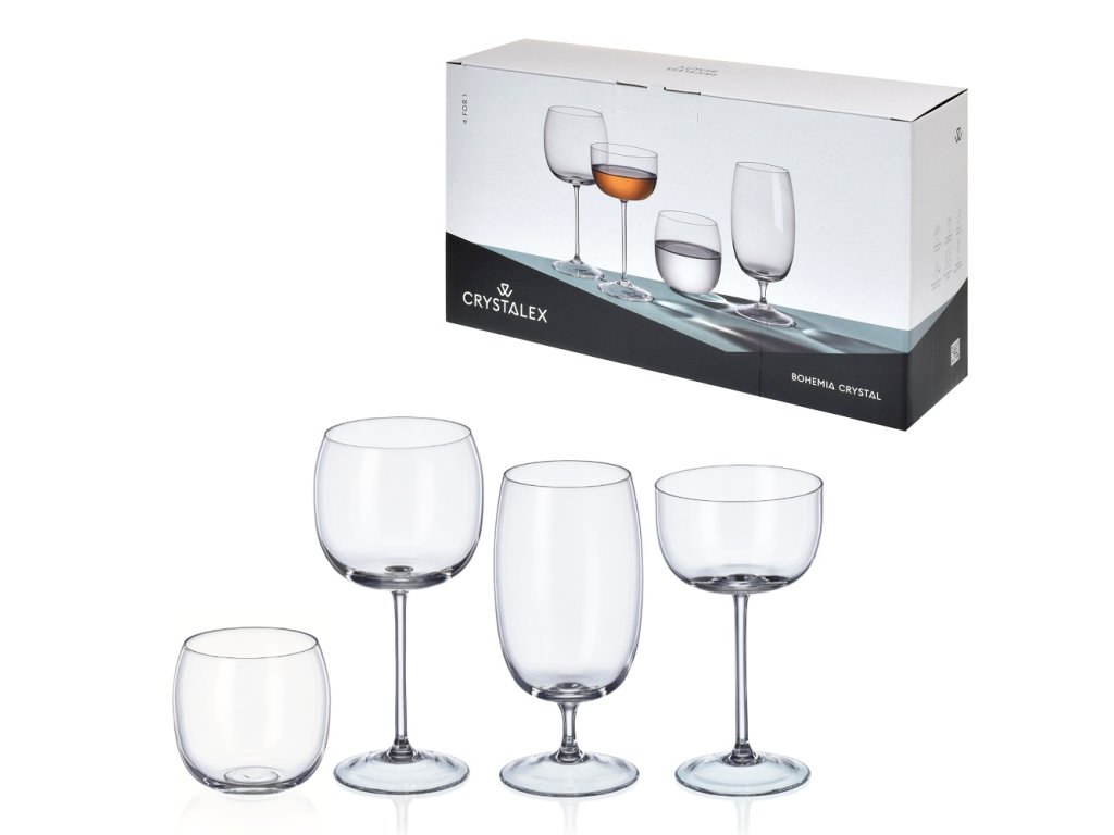 Minimalistický set 4 FOR 1 je ideální do jakékoliv menší domácnosti, ovšem zaujme i jednotlivce. Jeho tvarosloví reflektuje současné společenské tendence sociálních bublin a single života. Nabízí kompletní sadu sklenic na nealko, pivo, víno i šumivý nápoj v klasicky elegantním zpracování, jejichž počet se s každým novým členem může rozrůstat. Vhodné do myčky na nádobí.