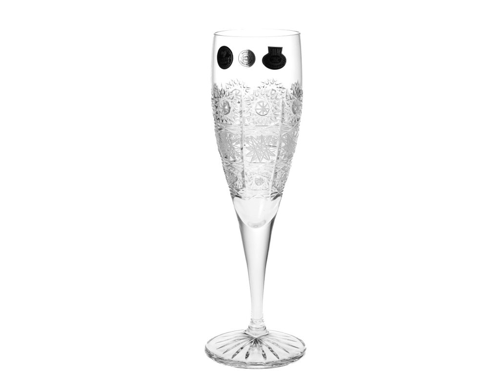 Luxusní ručně vyrobené flétny na sekty a prosecca s tradičním ručním brusem typu 500PK. vysoká umělecká hodnota tradiční řemeslo reprezentativní český dárek O vzniku typu brusu 500 PK: V roce 1929 vznikl patrně nejslavnější a komerčně nejúspěšnější typ brusu českého broušeného skla, užívaného později zejména při zdobení olovnatého křišťálu, a to vzor 500 PK. Jeho autorem byl brusič a podnikatel Ladislav Prostředník z Dobrušky (zkratka PK v typu dekoru odkazuje na jméno Prostředník). Lze použít v myčce na nádobí.