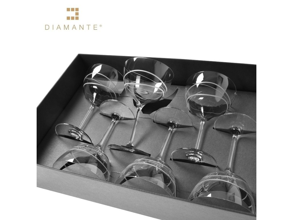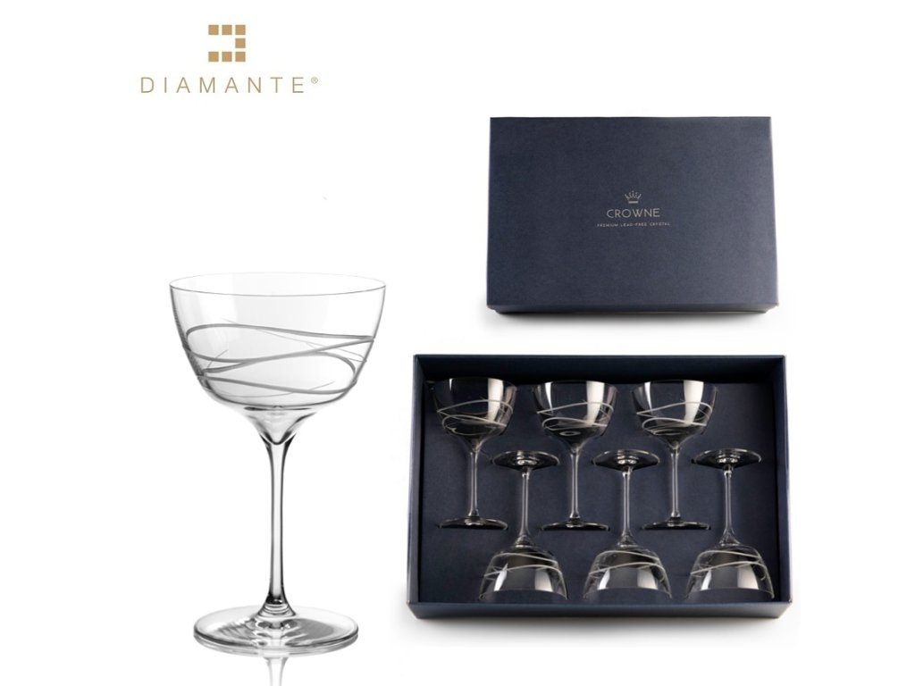 Ručně broušené sklenice ve tvaru misek na sekt, koktejly, ale třeba i na zmrzlinu značky Diamante® v dárkovém balení po 6 ks. Vhodné do myčky nádobí.